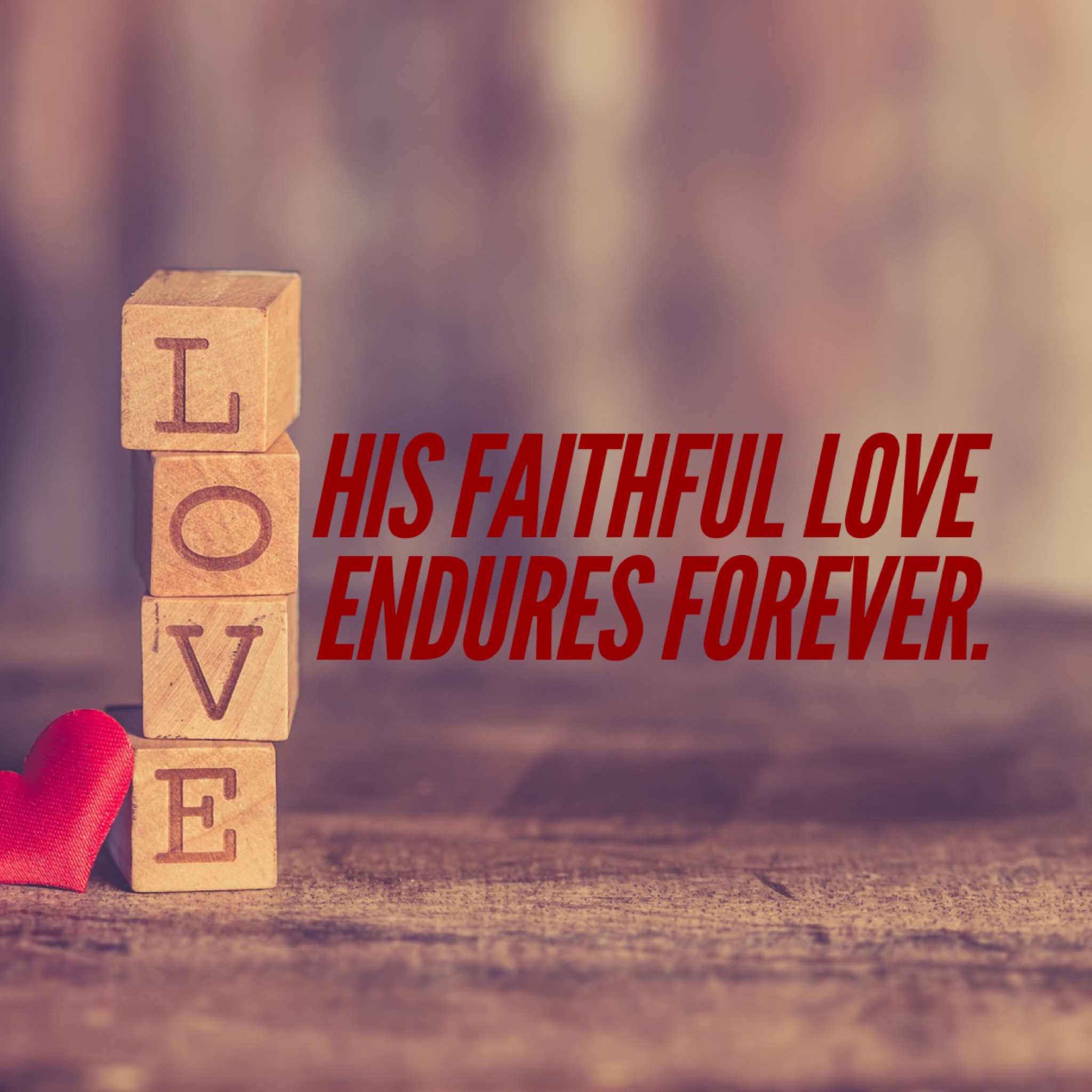 - His love never fails. – His faithful love endures forever. 1 Chronicles 16:34