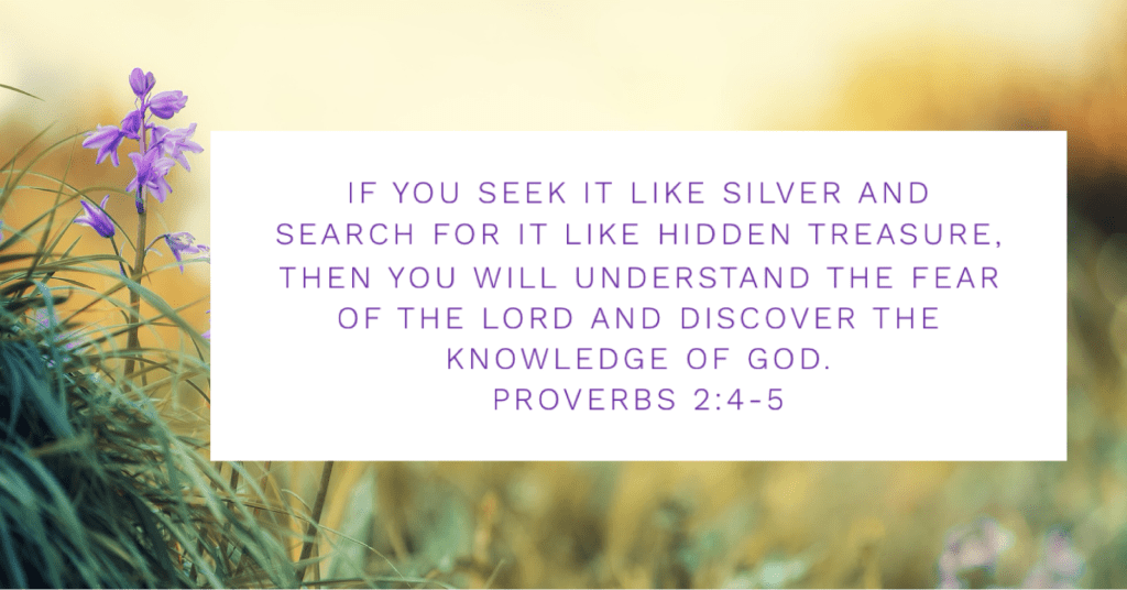 In order for us to find the wisdom of God and gain an understanding of the fear of the Lord , we must seek it with an even greater determination of finding $100 we’ve lost. Proverbs 2:4-5 says, “If you seek it like silver and search for it like hidden treasure, then you will understand the fear of the Lord and discover the knowledge of God.”