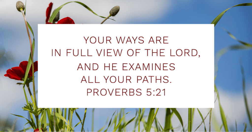 Verse 21 is an important reminder for everyone whether already dealing with sexual immorality issues or just as a warning to discourage these choices. “Your ways are in full view of the Lord, and he examines all your paths.” That which is done in secret is still seen by God because He sees all that we do. No matter how sneaky and careful a person is, God always sees; no sin is hidden from His sight.